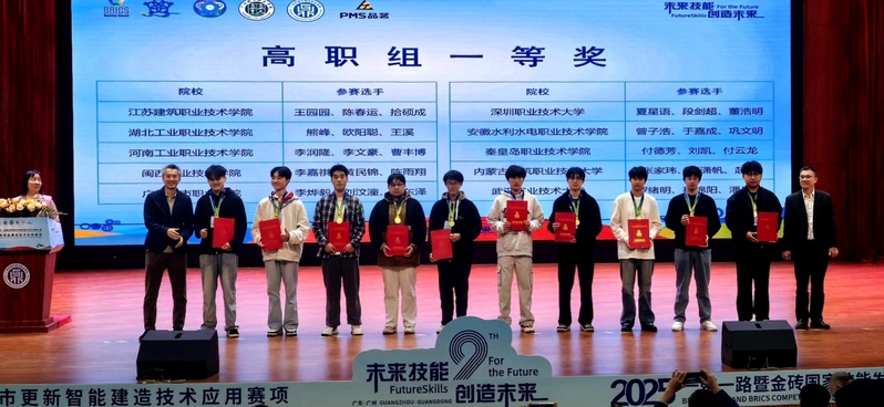 11月23日,由金砖国家工商理事会中方理事会、“一带一路”暨金砖国家技能发展国际联盟主办的2025“一带一路”暨金砖国家技能发展与技术创新大赛城市更新智能建造技术应用赛项总决赛在广州举行。由我校建筑建造学院学生拾硕成、王园园和陈春运组成的参赛团队(指导教师:毛燕红、安沁丽)在比赛中获高职组一等奖。