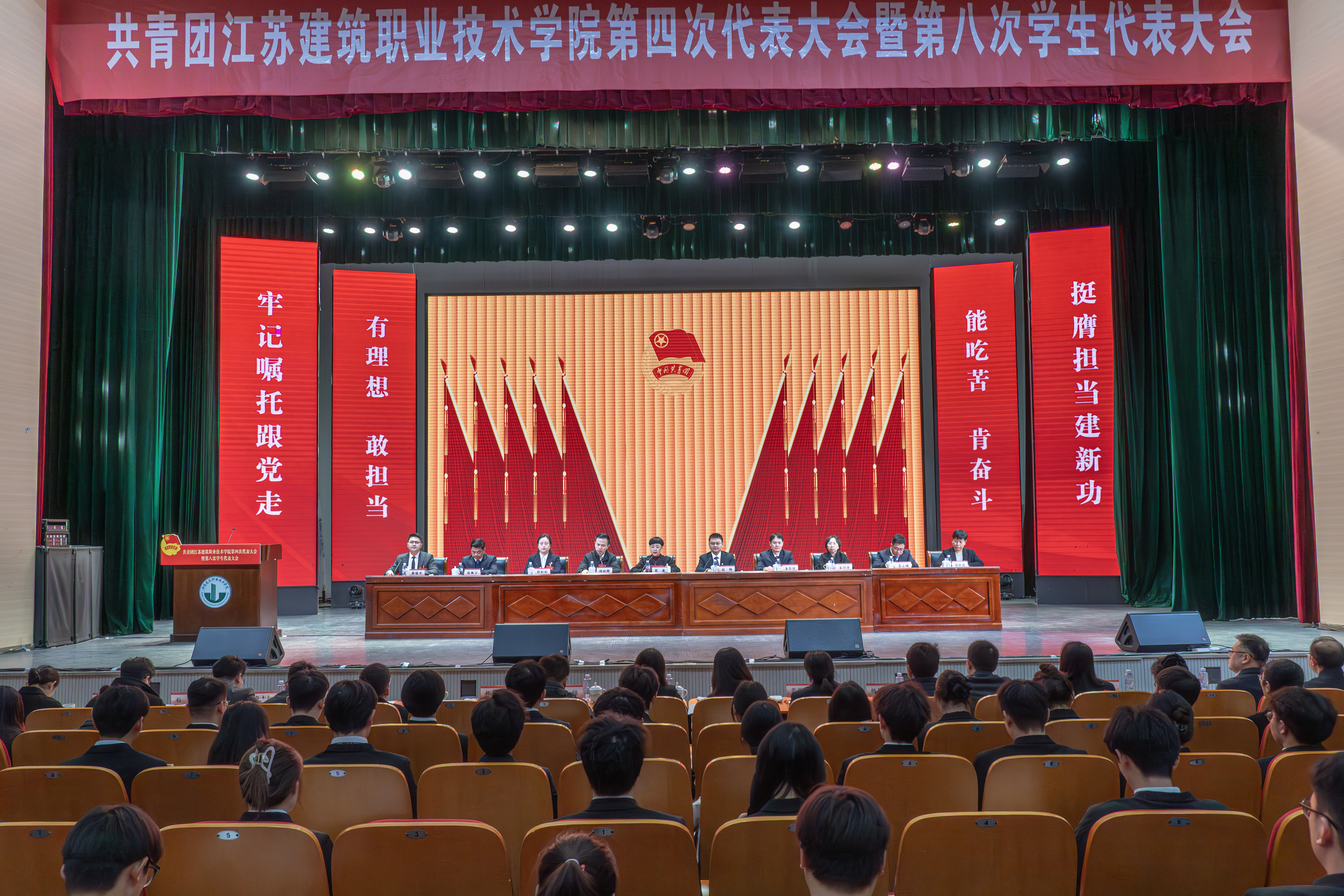 12月26日,共青团江苏建筑职业技术学院第四次代表大会暨第八次学生代表大会在学校会堂胜利召开。学校党委副书记梁惠、共青团江苏省委高校部副部长赵峰、共青团徐州市委书记周祖曙、学校纪委书记朱作付、团市委学少部负责人、在徐兄弟高校团委书记、学校职能部门负责人、各二级学院学生工作负责人出席大会开幕式,150名团员代表、148名学生代表参加会议。