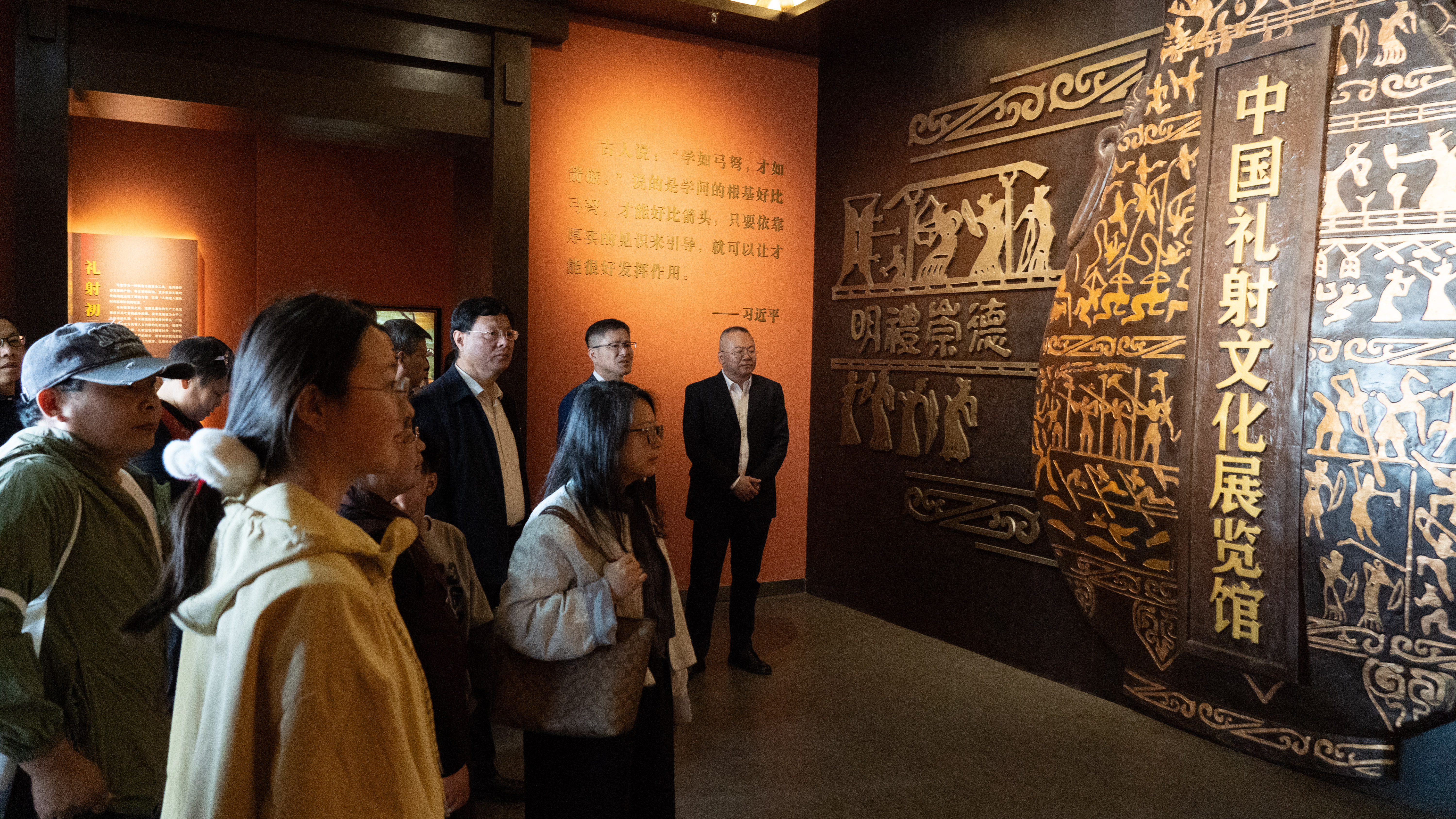 仪式结束后,全体与会人员在教一楼前合影留念,定格这一珍贵时刻。随后,校友们参观了学校射艺馆。